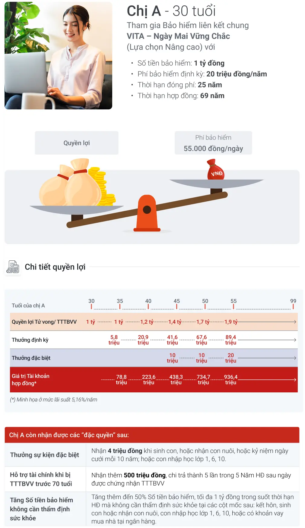 Bảo hiểm liên kết chung VITA – Ngày Mai Vững Chắc là giải pháp giúp bạn xây dựng nền tảng tài chính ổn định và bảo vệ những điều quý giá đang diễn ra – ở đây, lúc này.
